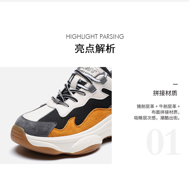 | 鞋底材质:橡胶底 | 内增高:无 | 鞋面材质:布面牛剖层皮革猪剖层革 | 适用场合:运动休闲日常休闲 | 闭合方式:系带 |