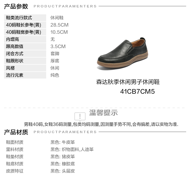 风格:休闲 色系:黑色 跟高数值:3.5CM 40码鞋宽参考(男):10.5CM 性别:男子