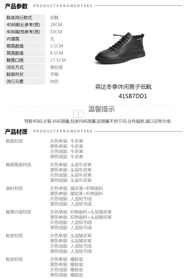 | 40码鞋长参考(男):28CM | 鞋头款式:圆头 | 鞋底材质:橡胶底 | 鞋面图案:纯色 | 内增高:无 |