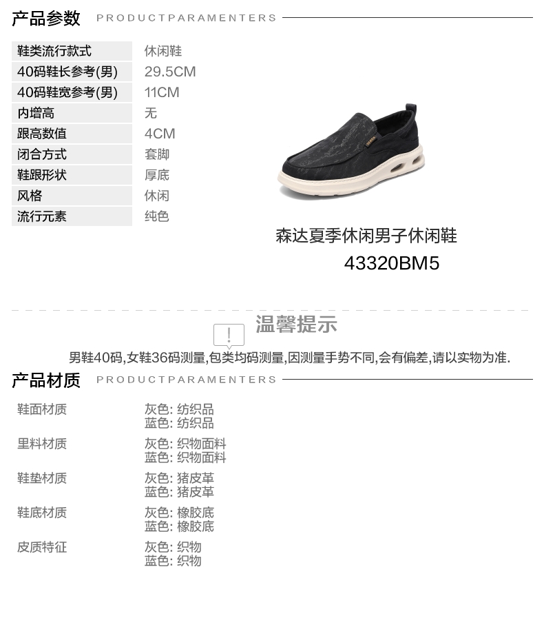 | 风格:休闲 | 色系:蓝色 | 跟高数值:4CM | 40码鞋宽参考(男):11CM | 性别:男子 |