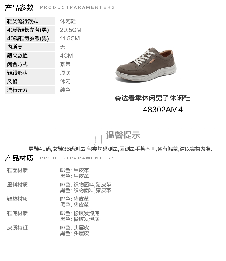 | 40码鞋长参考(男):29.5CM | 鞋帮:低帮 | 鞋底材质:橡胶发泡底 | 内增高:无 | 鞋面材质:牛皮革 |
