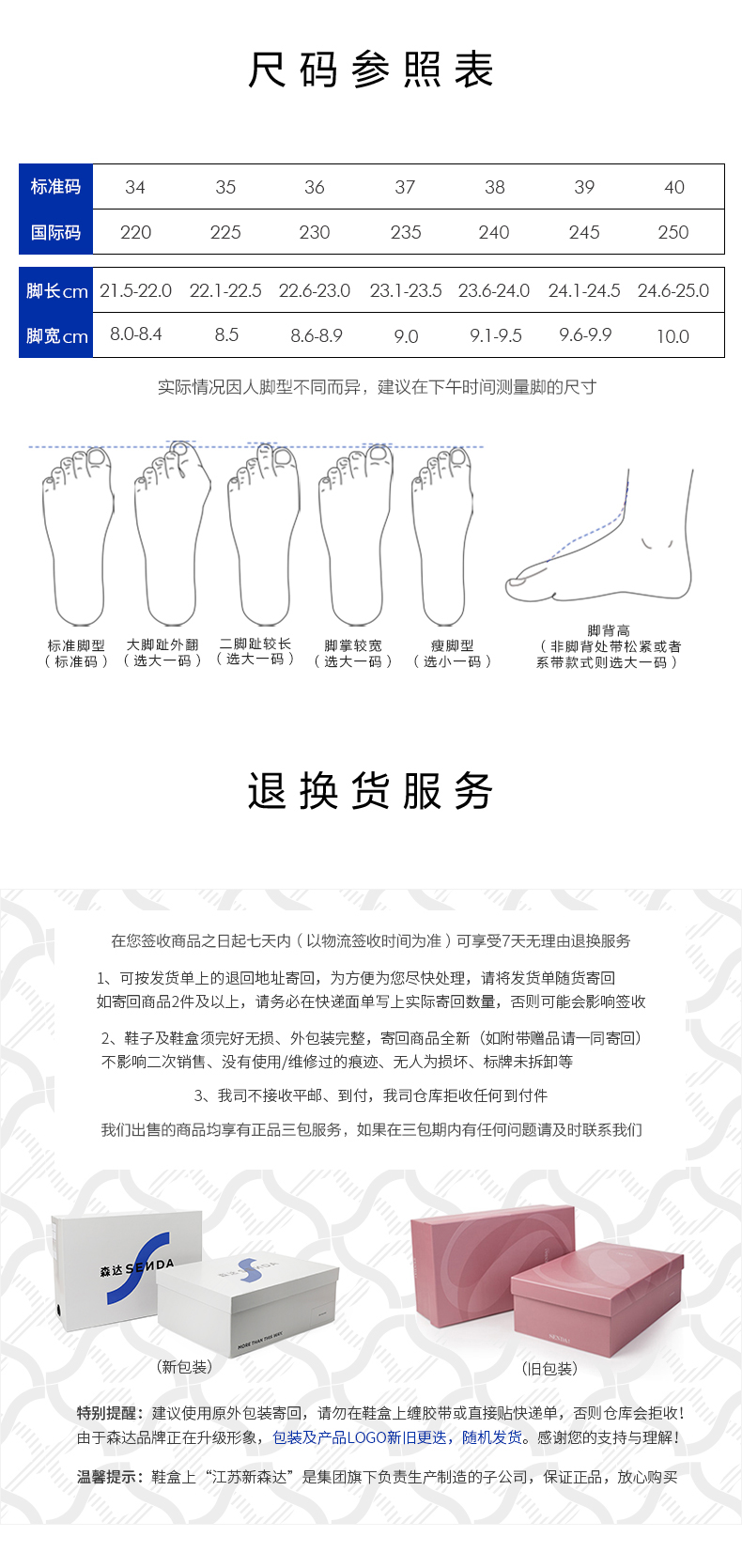| 上市时间:2024年春季 | 生产/经销/进口厂家:江苏新森达鞋业有限公司 | 鞋类流行款式:深口鞋 | 鞋头款式:圆头 | 执行标准:舒适上班鞋 Q/320925XSD 001-2023 |