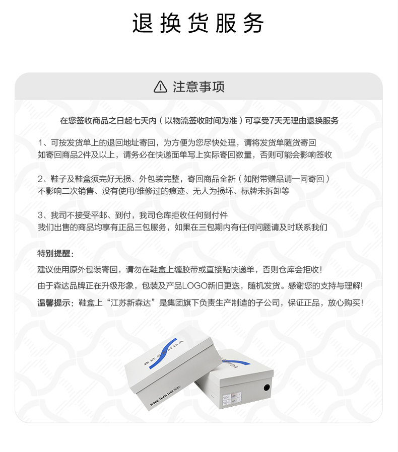 SENDA(森达),品牌成立于1977年,拥有40年发展史,秉承舒适的制鞋理念,从用料到工艺都经过严格质量把控。男鞋以舒适质感著称,覆盖商务正装、商务休闲、时尚休闲三大系列,适用不同场合的需求,同时开发摩克、加州等一系列功能性鞋履,行走体验;女鞋以款式优雅、穿着舒适为主要特征,依时尚潮流添加当季设计元素,每季推出时尚、休闲等系列鞋款,为都市白领提供不同场合的搭配需求。目前门店已覆盖近百座城市,数量达1800多家。