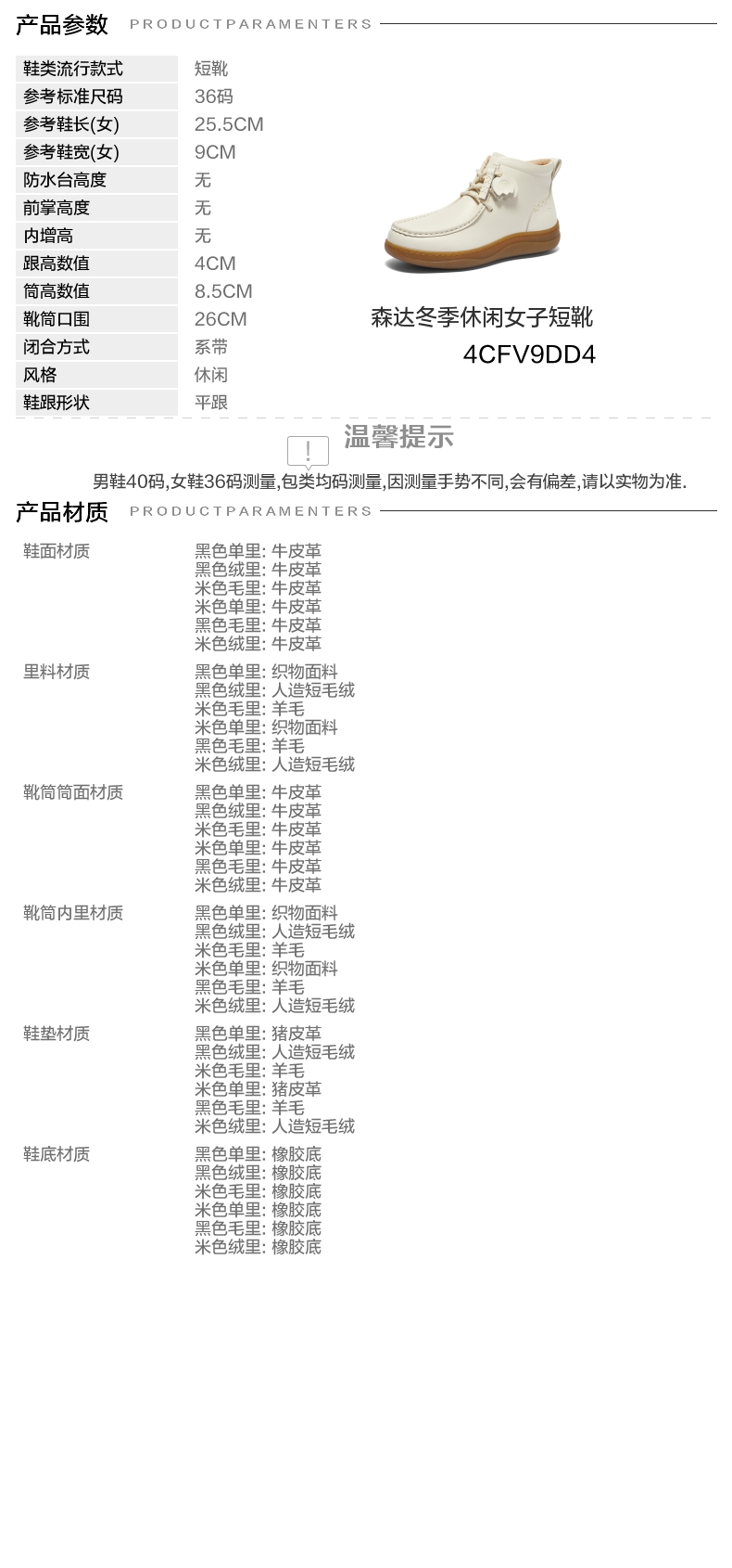 | 靴筒口围:26CM | 风格分类:休闲靴 | 上市时间:2024年冬季 | 生产/经销/进口厂家:江苏新森达鞋业有限公司 | 鞋类流行款式:短靴 |