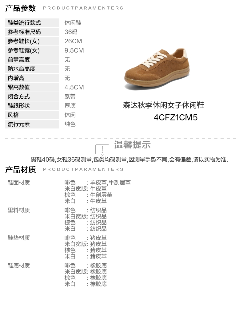 | 鞋帮:低帮 | 鞋底材质:橡胶底 | 内增高:无 | 鞋面材质:牛剖层革 | 闭合方式:系带 |