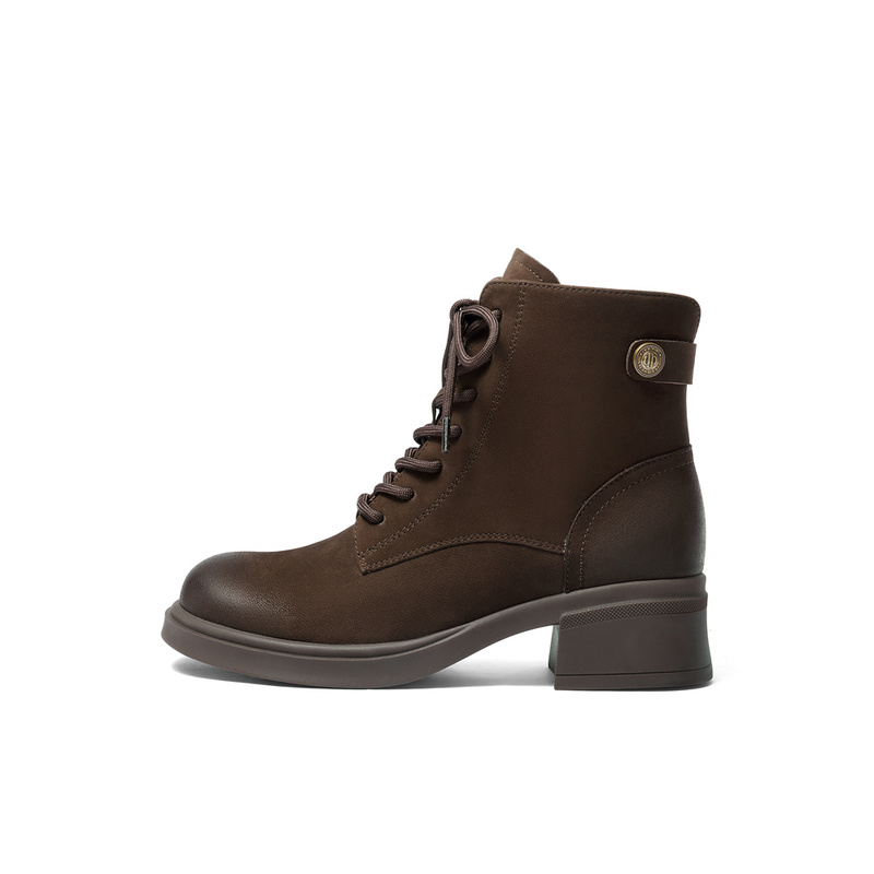 • 森达马丁靴女2025冬新商场同款潮流户外粗跟短皮靴4CU40DD5