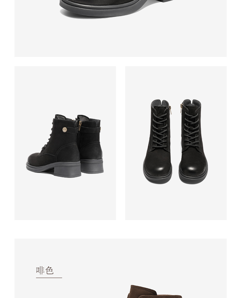 | 鞋底材质:橡胶底 | 靴筒内里材质:人造短毛绒 | 内增高:无 | 鞋面材质:羊皮革 | 闭合方式:侧拉链 |