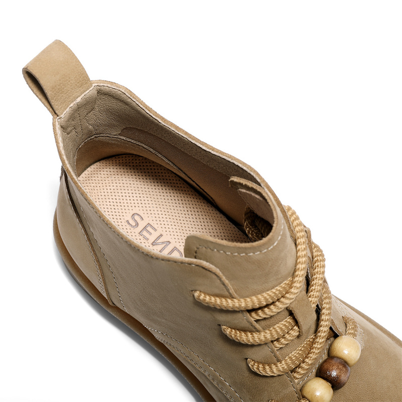 | 鞋底材质:橡胶底 | 靴筒内里材质:人造革织物面料 | 内增高:无 | 鞋面材质:羊皮革 | 闭合方式:系带 |