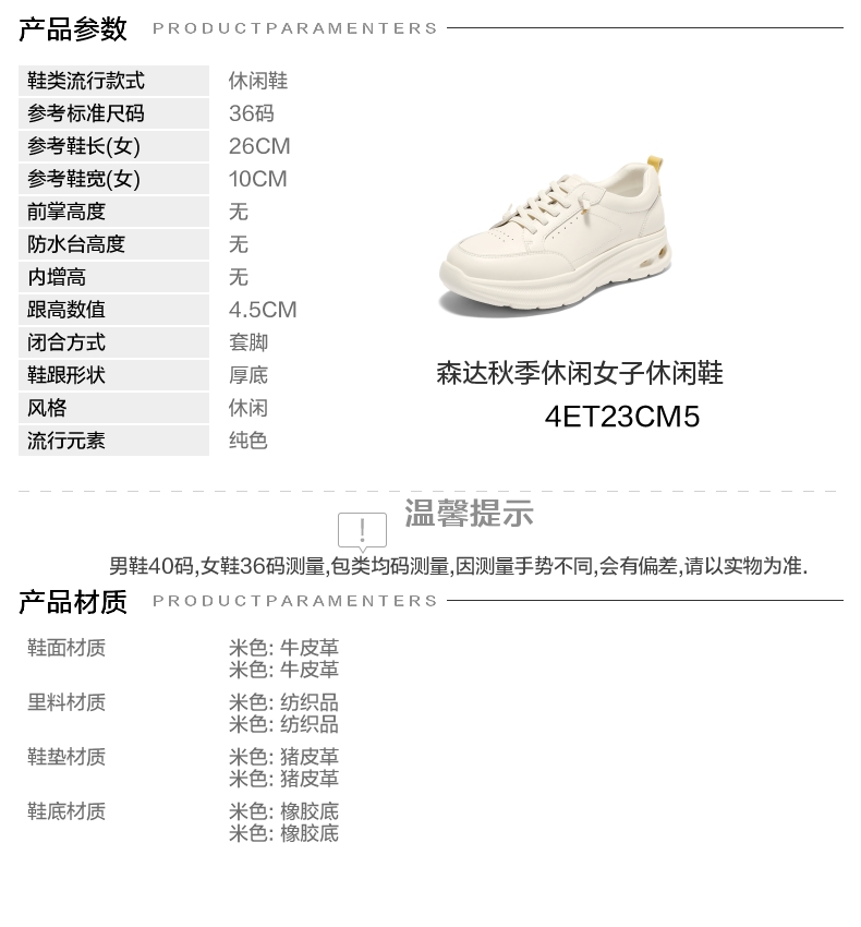 | 色系:米白 | 跟高数值:4.5CM | 性别:女子 | 里料材质:纺织品 | 制鞋工艺:胶贴皮鞋 |