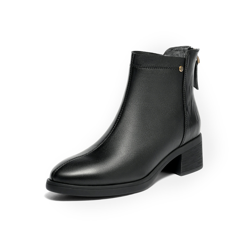 森达时装靴女款2025冬新商场同款气质显瘦粗跟短皮靴4FU42DD5