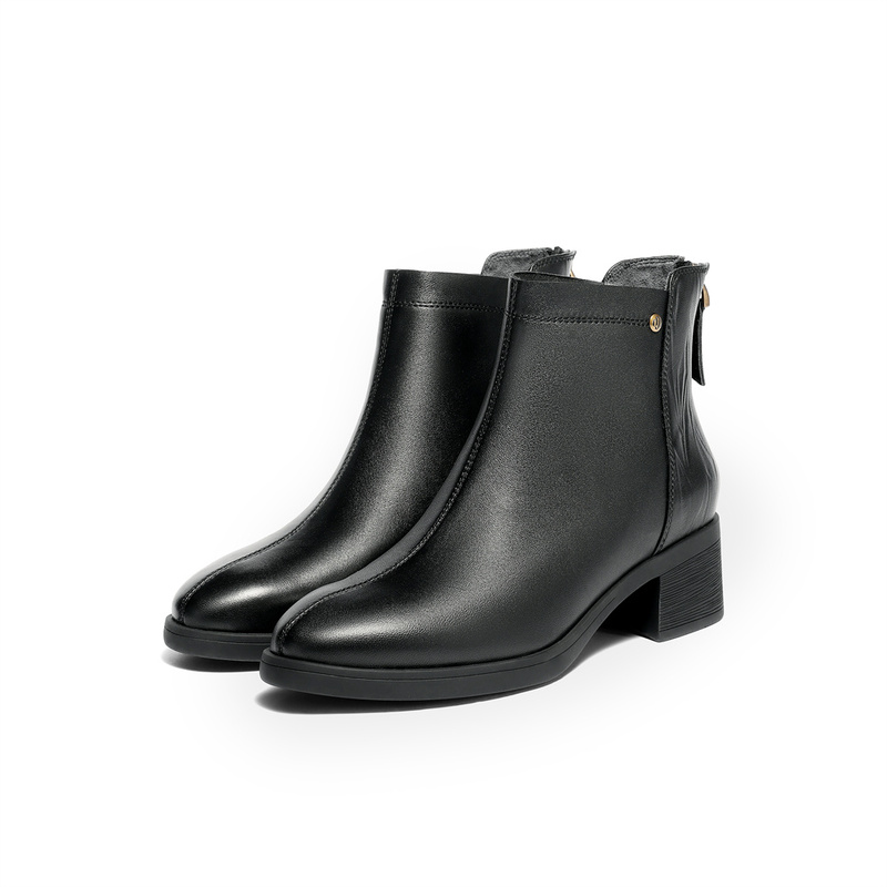 • 森达时装靴女款2025冬新商场同款气质显瘦粗跟短皮靴4FU42DD5