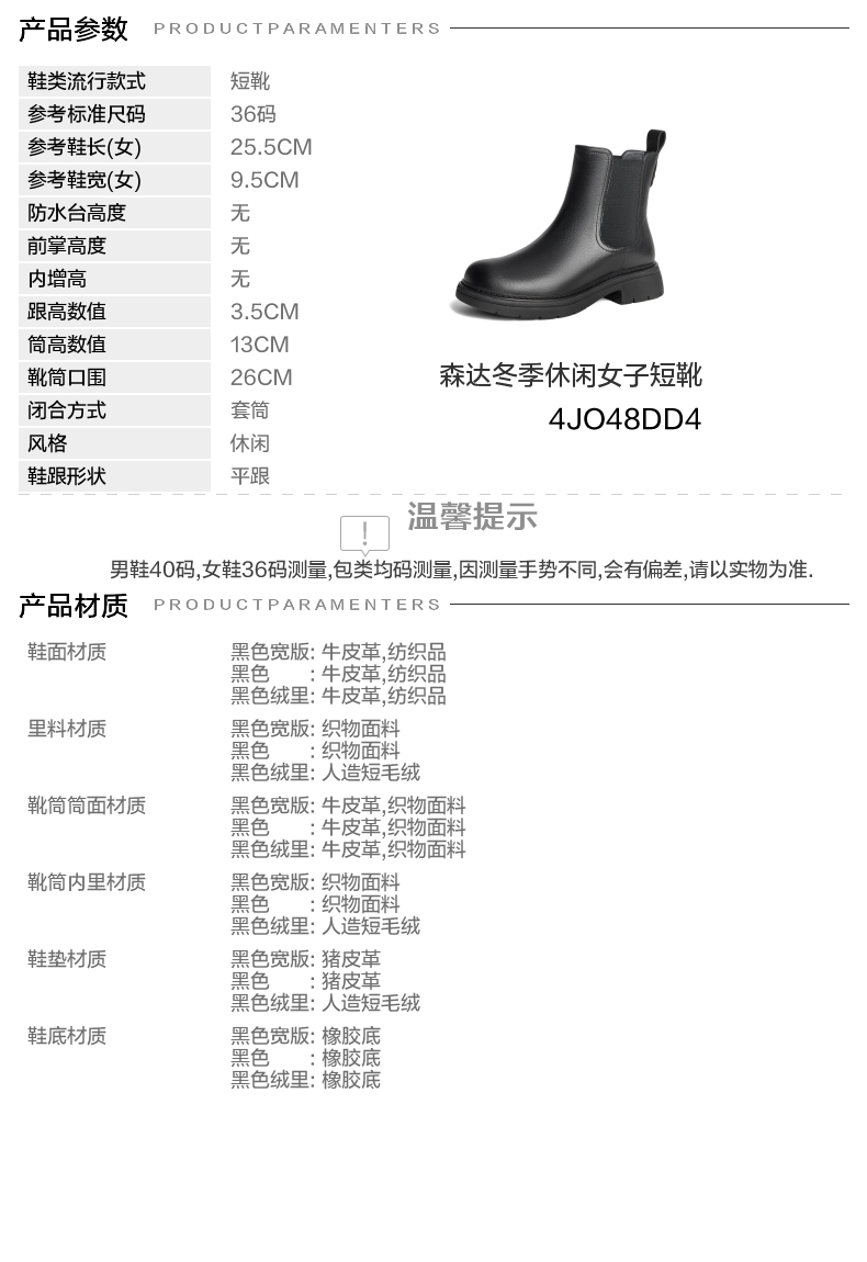 | 鞋底材质:橡胶底 | 靴筒内里材质:人造短毛绒 | 内增高:无 | 鞋面材质:纺织品牛皮革 | 闭合方式:套筒 |