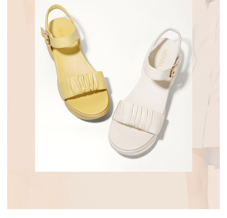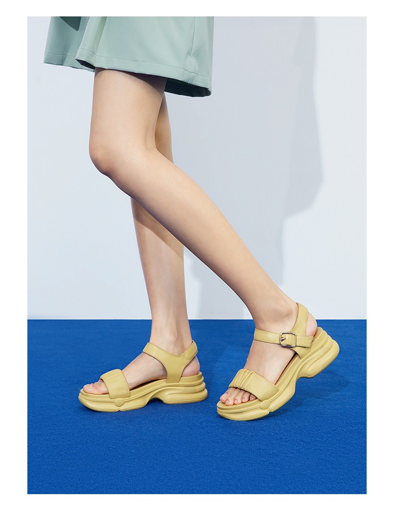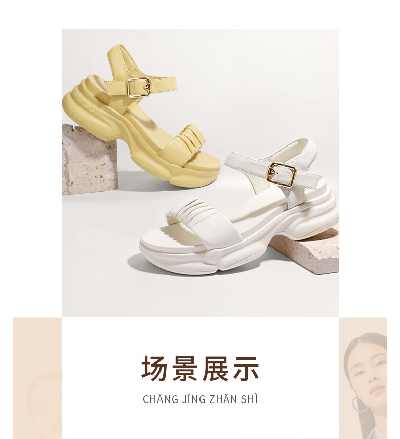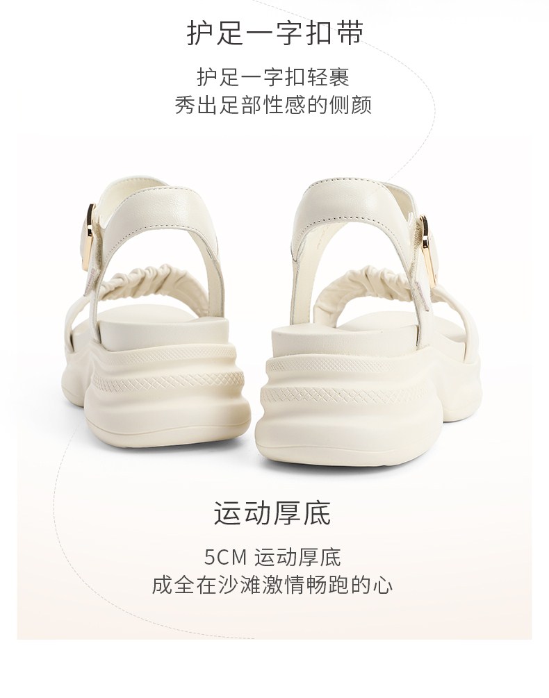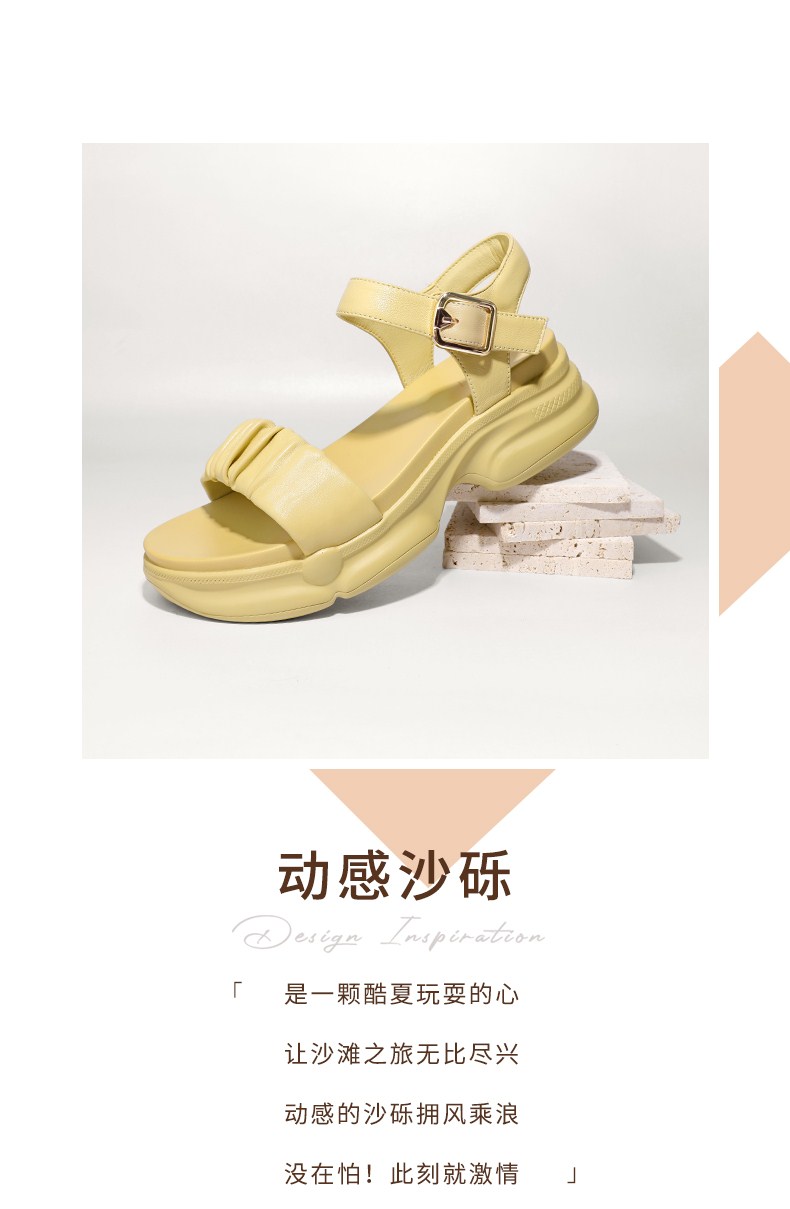 | 鞋头款式:露趾 | 鞋底材质:橡胶底 | 鞋面图案:纯色 | 鞋跟形状:厚底 | 鞋面材质:羊皮革 |