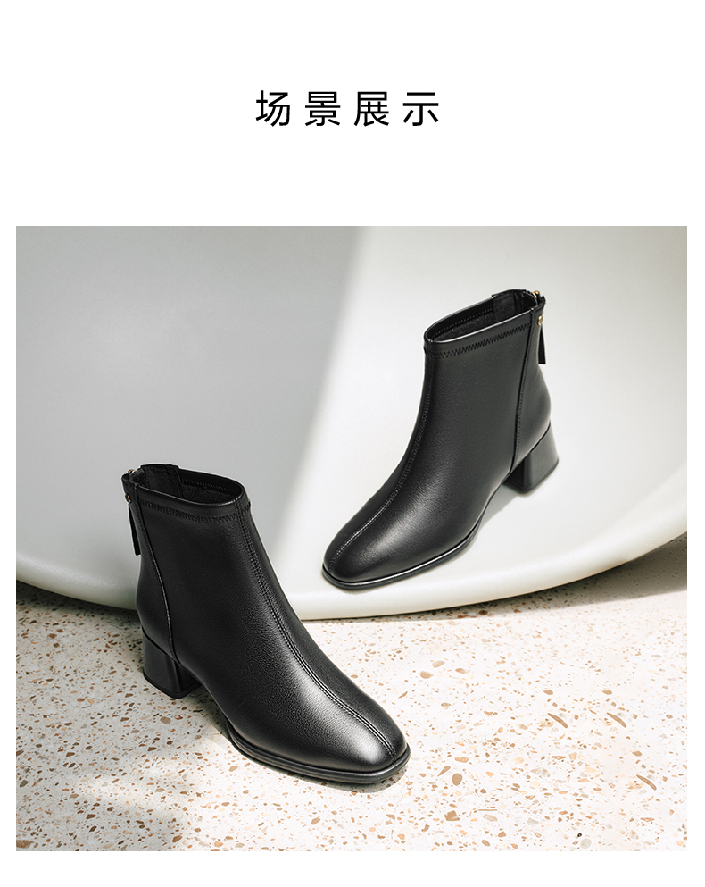 | 鞋底材质:橡胶底 | 靴筒内里材质:人造革织物面料 | 内增高:无 | 鞋面材质:牛皮革 | 闭合方式:后拉链 |
