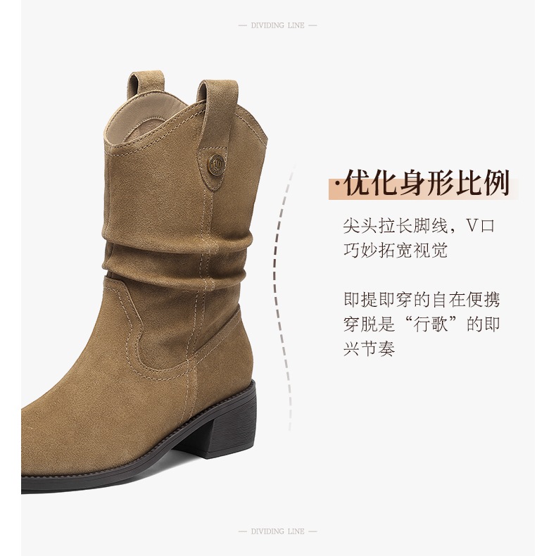 | 配跟:无 | 靴筒口围:34CM | 上市时间:2025年冬季 | 鞋类流行款式:中靴 | 鞋头款式:尖头 |