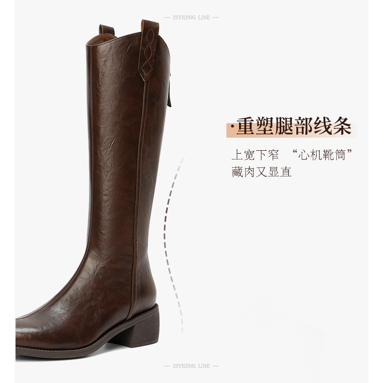 | 风格:休闲 | 色系:棕色 | 跟高数值:5CM | 性别:女子 | 筒高数值:35CM |