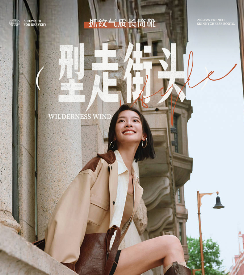 • 森达西部靴女2025冬季新款商场同款抓纹粗跟长筒靴4QH80DC5