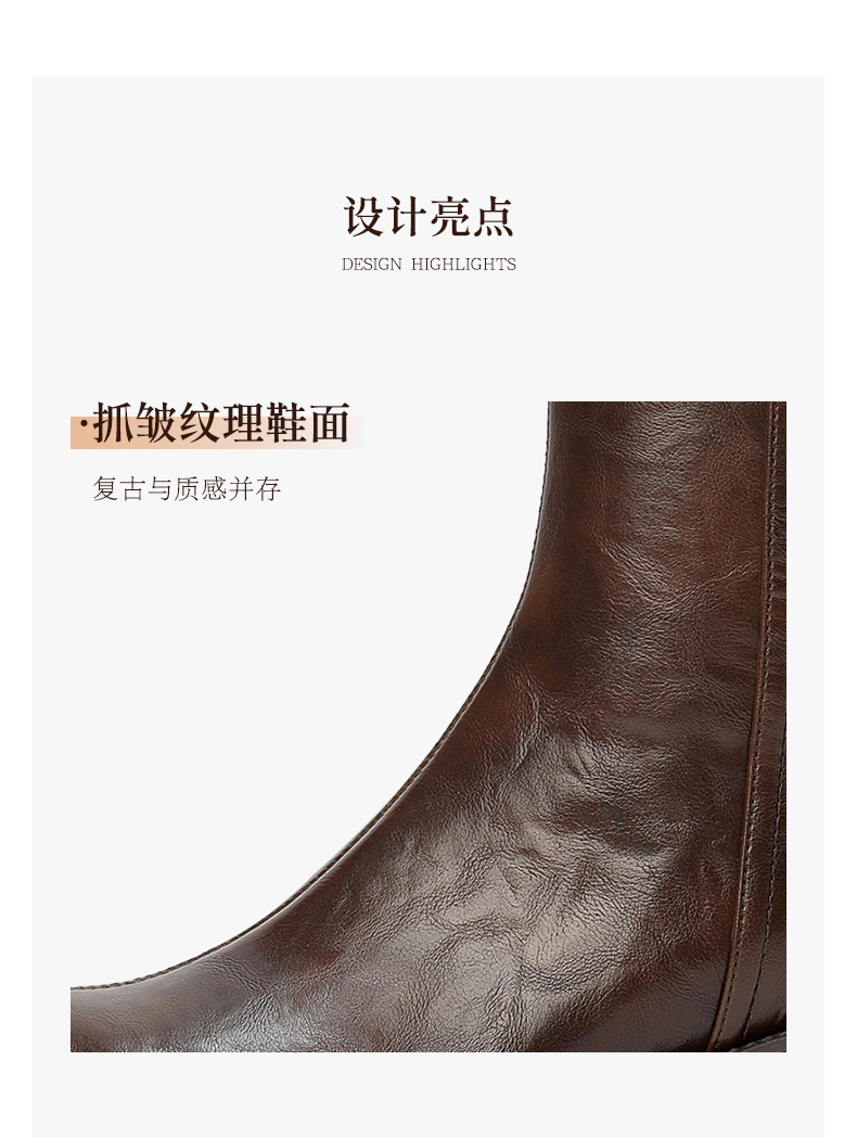 靴筒筒面材质:人造革 靴筒小腿围:36CM 里料材质:人造革织物面料 制鞋工艺:胶贴皮鞋 鞋垫材质:猪皮革