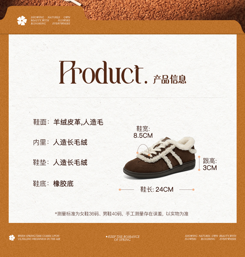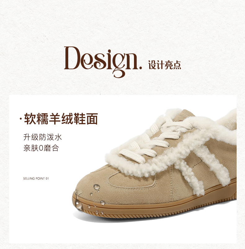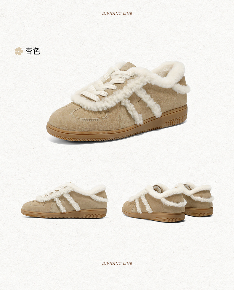| 鞋帮:低帮 | 鞋底材质:橡胶底 | 内增高:无 | 鞋面材质:人造毛羊绒皮革 | 闭合方式:系带 |