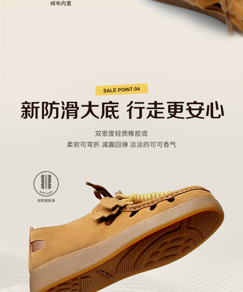 鞋帮:低帮 鞋底材质:橡胶底 内增高:无 鞋面材质:牛剖层革 适用场合:日常休闲