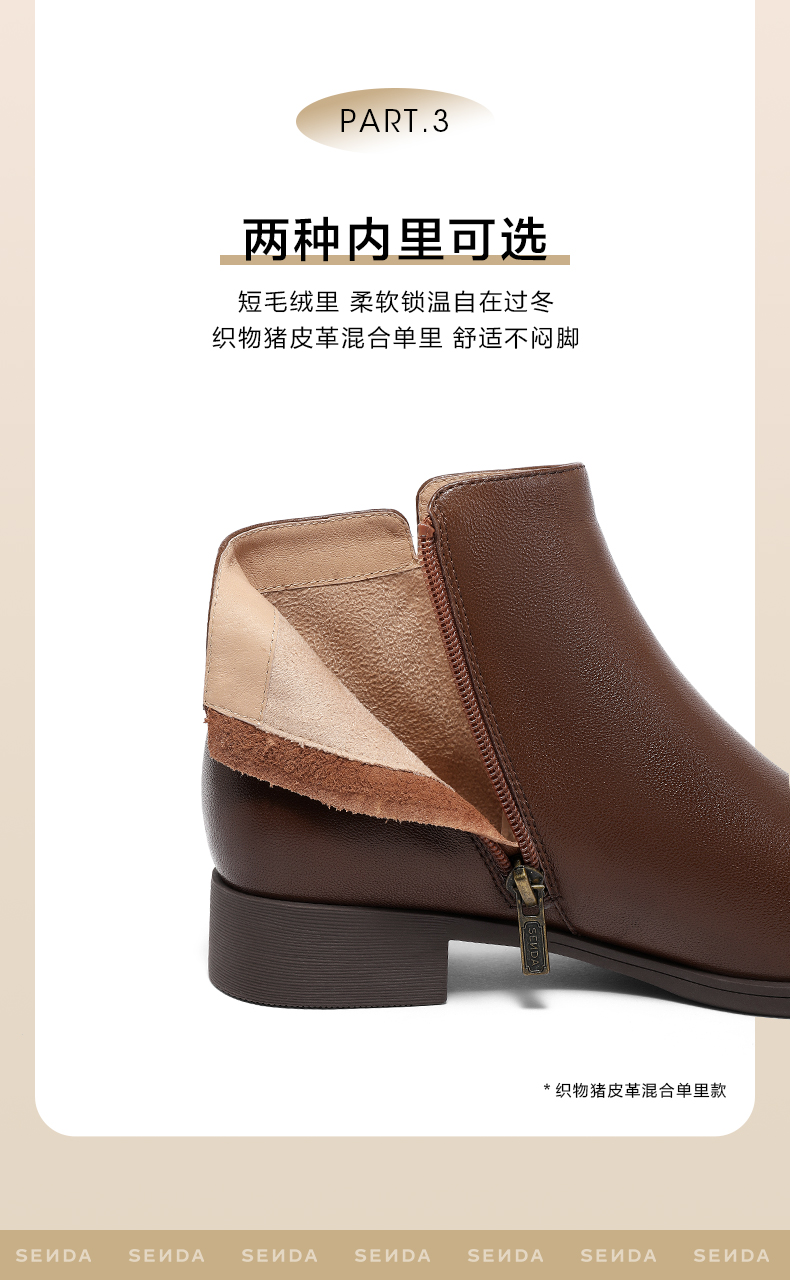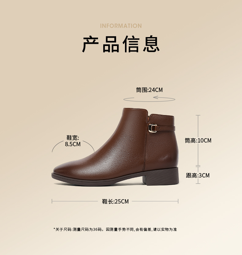 | 帮面材质:羊皮 | 配跟:无 | 靴筒口围:24CM | 上市时间:2025年冬季 | 鞋类流行款式:短靴 |
