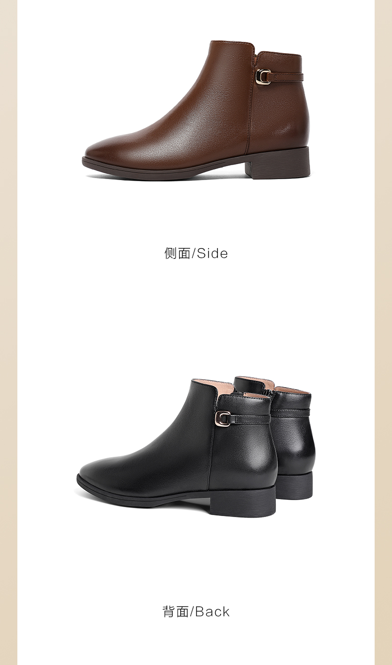 | 鞋底材质:橡胶底 | 靴筒内里材质:人造短毛绒 | 内增高:无 | 鞋面材质:羊皮革 | 闭合方式:侧拉链 |