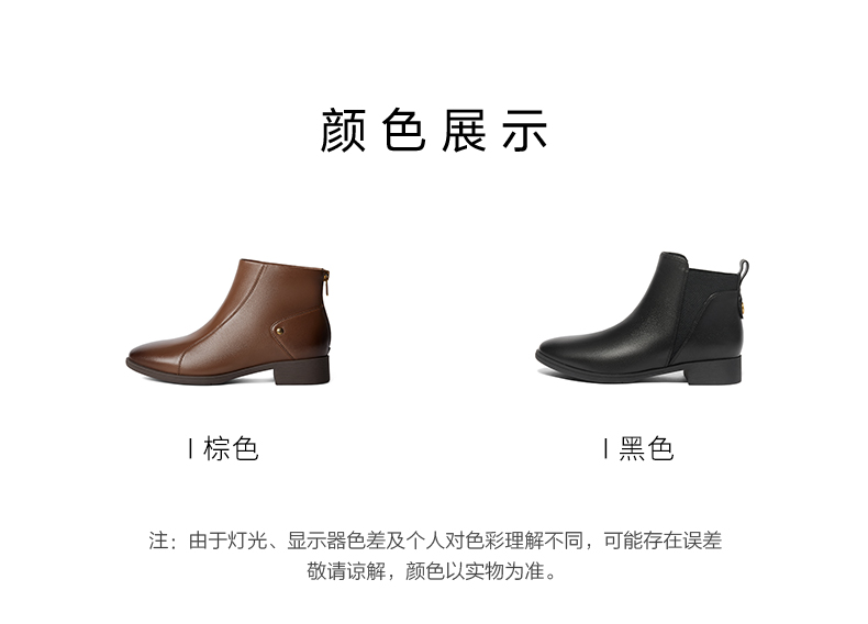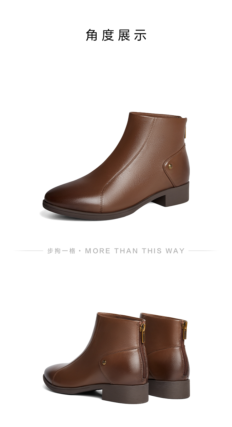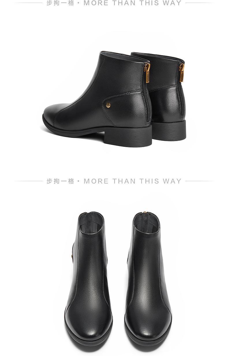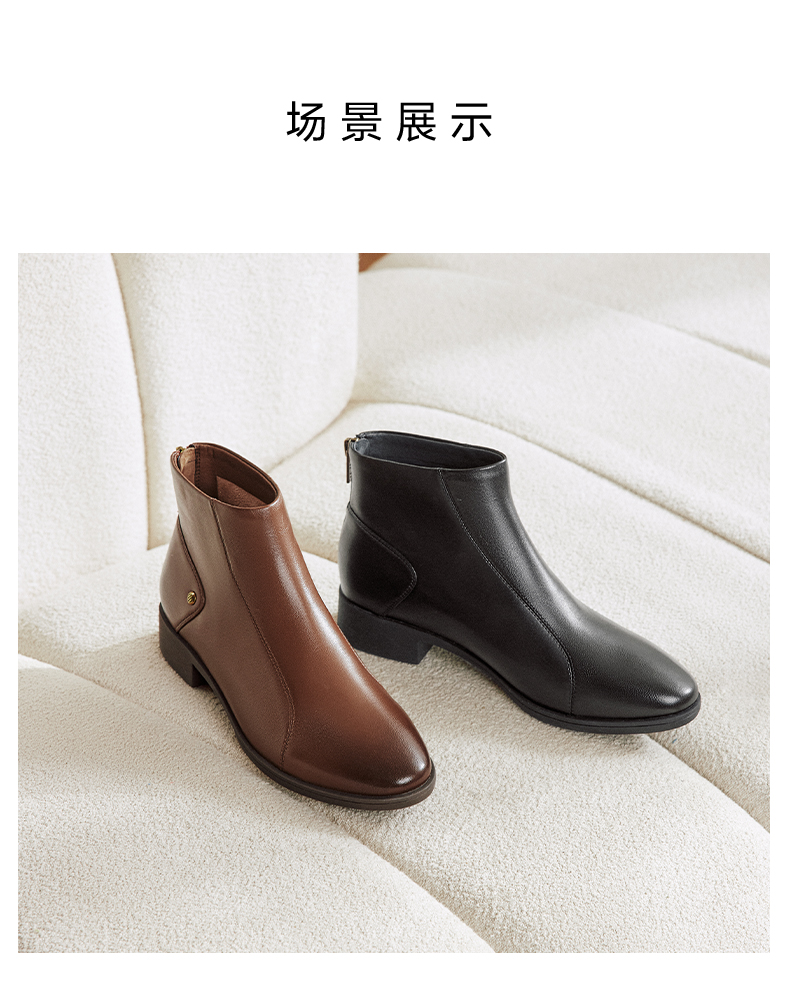 | 鞋底材质:橡胶底 | 靴筒内里材质:织物面料人造革 | 内增高:无 | 鞋面材质:羊皮革 | 闭合方式:后拉链 |