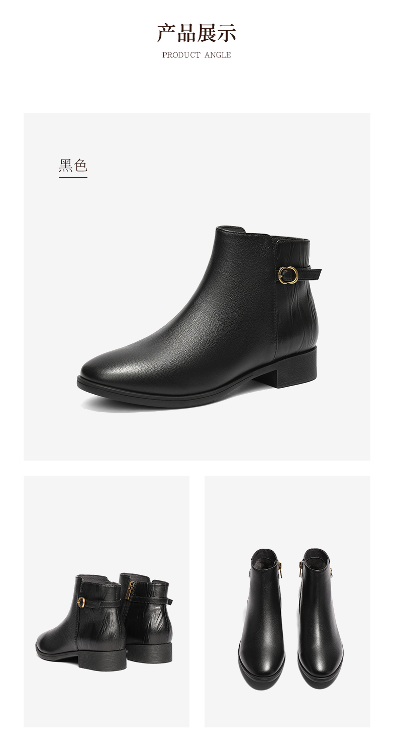 | 鞋底材质:橡胶底 | 靴筒内里材质:织物面料 | 内增高:无 | 鞋面材质:羊皮革 | 闭合方式:侧拉链 |