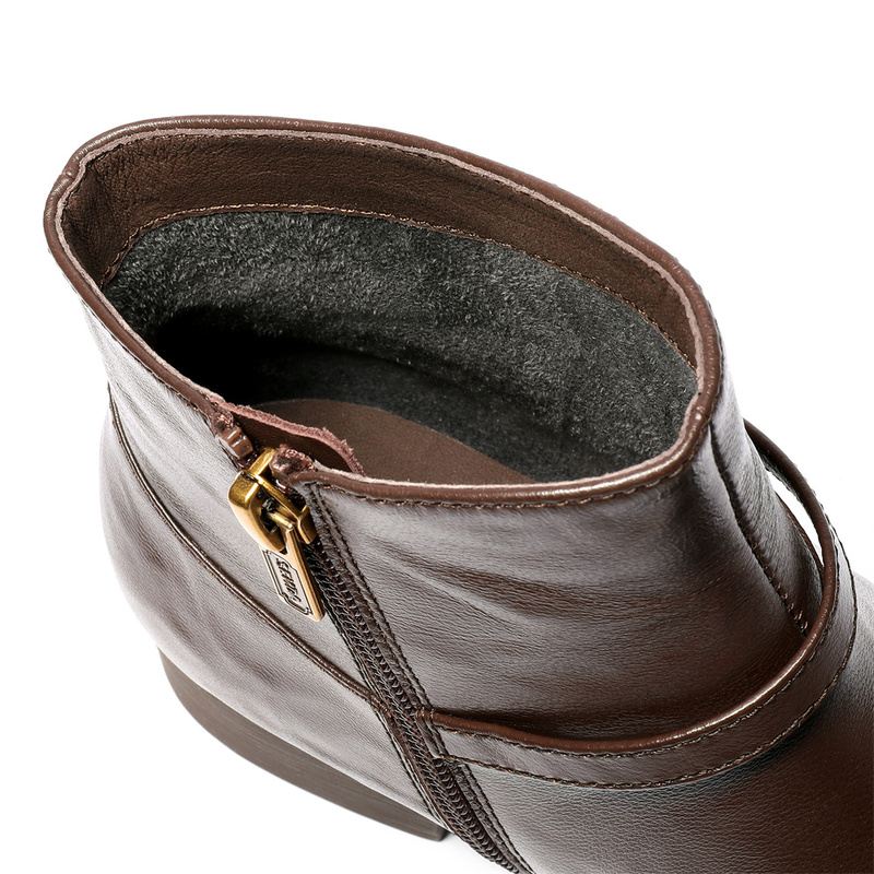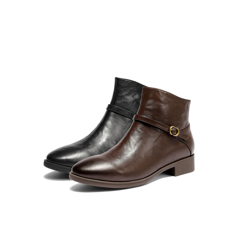 • 森达休闲靴女2025冬季新款真皮抓纹粗跟短皮鞋4T6C2DD5