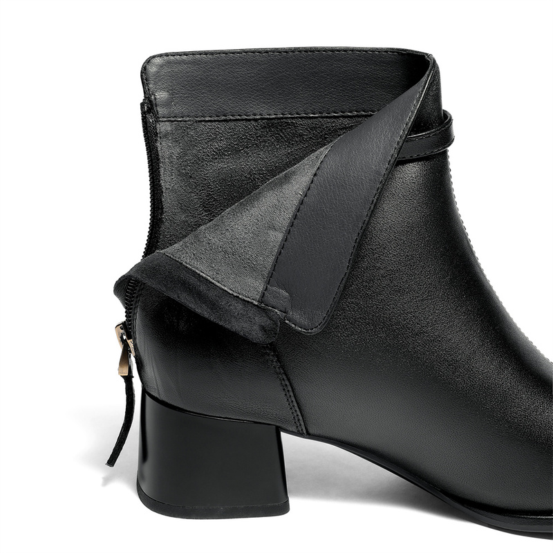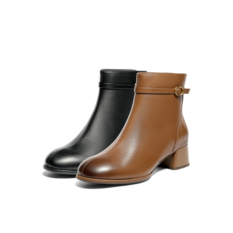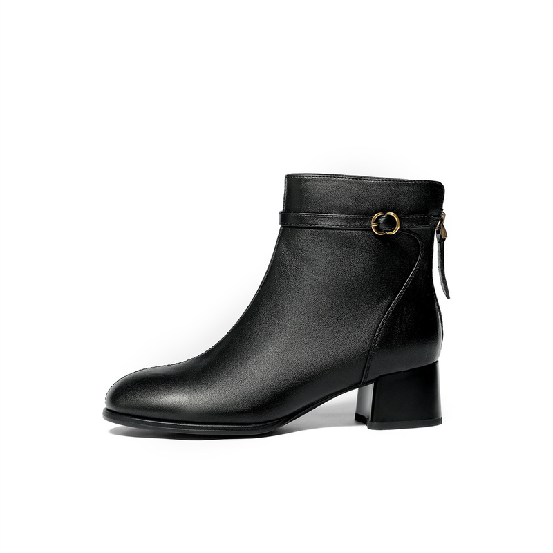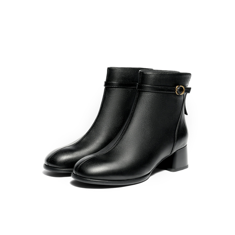 • 森达时装靴女2025冬新商场同款皮带扣粗跟短皮靴4TQ43DD5