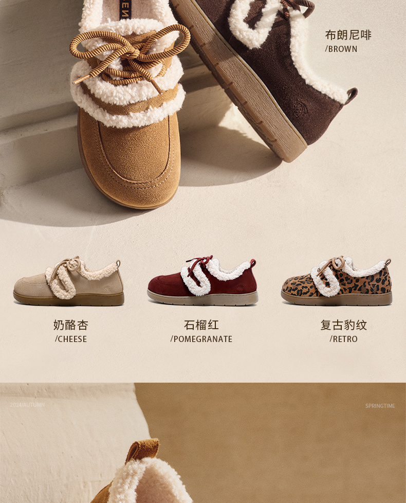 | 款式季节:春季 | 鞋垫材质:人造短毛绒 | 渠道划分:电商专销 | 前掌高度:无 | 皮质特征:二层皮 |