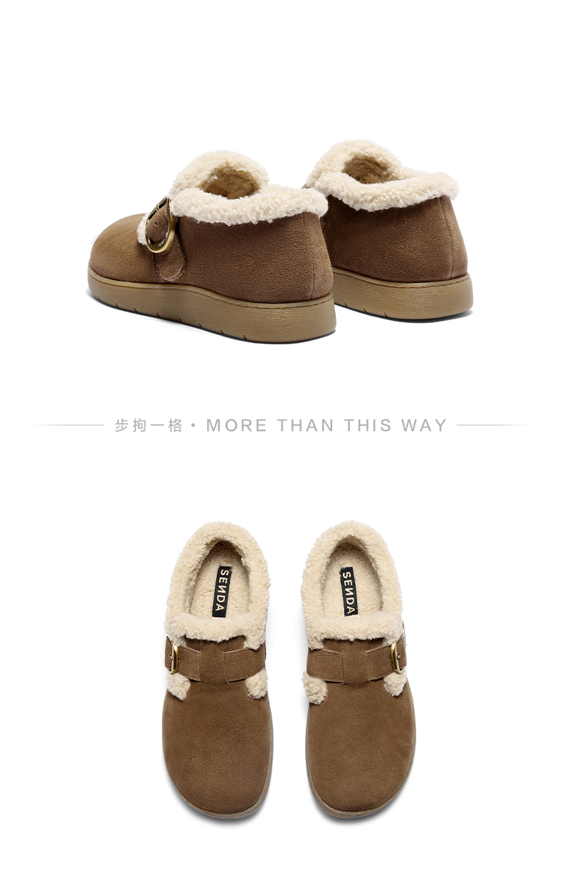 | 色系:咖啡色 | 跟高数值:2.5CM | 性别:女子 | 里料材质:人造长毛绒 | 制鞋工艺:胶贴皮鞋 |