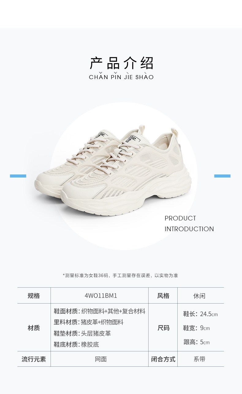 | 鞋面材质:复合材料其他织物面料 | 流行元素:纯色 | 参考鞋长(女):24.5CM | 参考鞋宽(女):9CM | 闭合方式:系带 |