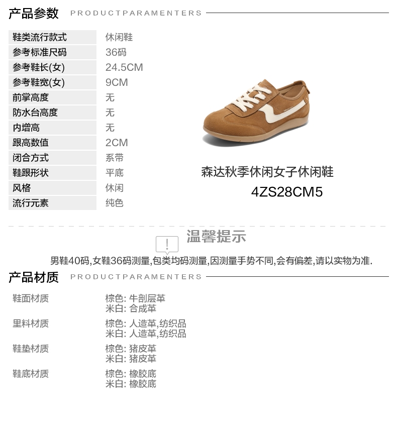 | 鞋帮:低帮 | 鞋底材质:橡胶底 | 内增高:无 | 鞋面材质:牛剖层革 | 闭合方式:系带 |