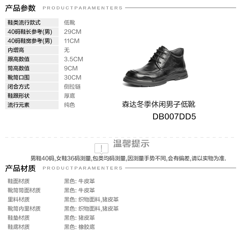里料材质:猪皮革织物面料 制鞋工艺:胶贴皮鞋 鞋垫材质:猪皮革 款式季节:冬季 皮质特征:头层皮