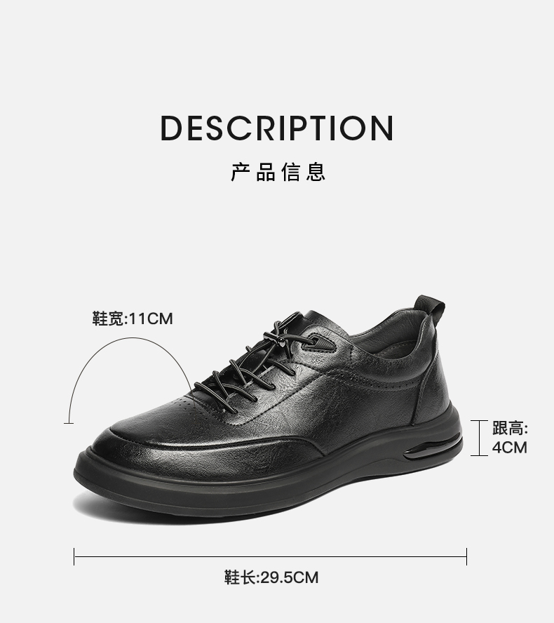 | 风格:休闲 | 色系:黑色 | 跟高数值:4CM | 40码鞋宽参考(男):11CM | 性别:男子 |