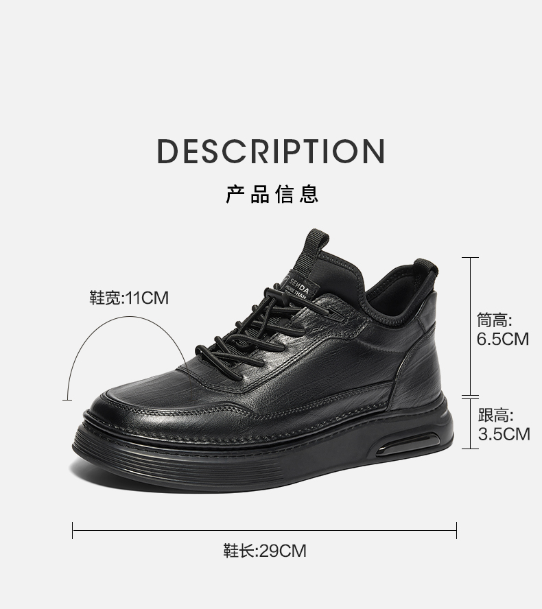 | 跟高数值:3.5CM | 色系:黑色 | 性别:男子 | 筒高数值:6.5CM | 靴筒筒面材质:织物面料牛皮革 |