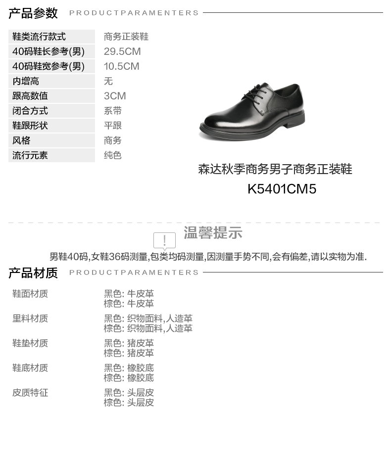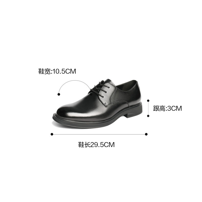 | 风格:商务 | 色系:黑色 | 跟高数值:3CM | 40码鞋宽参考(男):10.5CM | 性别:男子 |