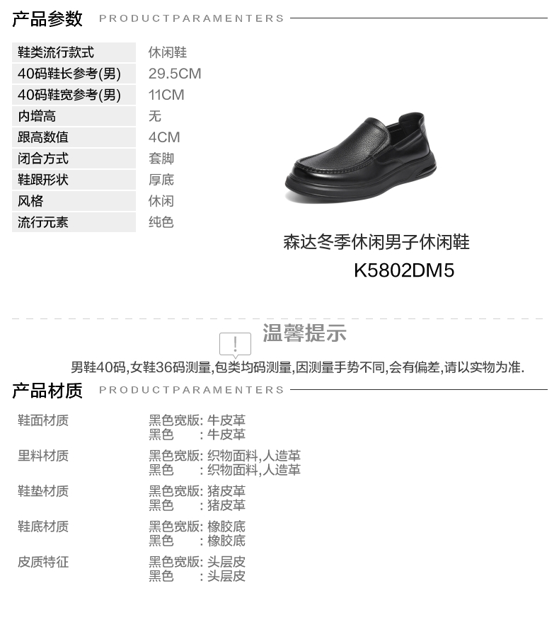 风格:休闲 色系:黑色 跟高数值:4CM 40码鞋宽参考(男):11CM 性别:男子