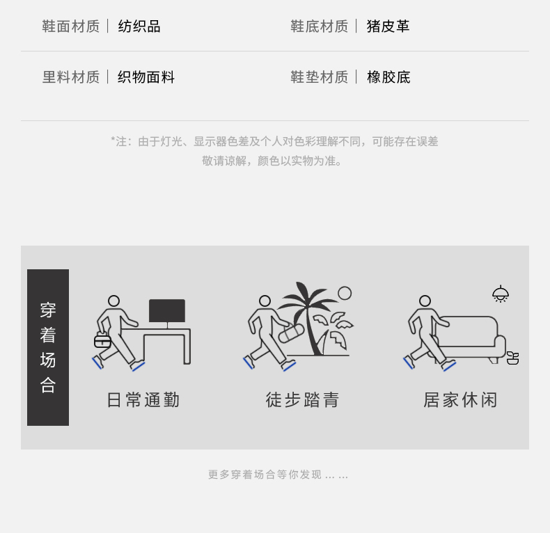 | 40码鞋长参考(男):29.5CM | 鞋帮:低帮 | 鞋底材质:橡胶底 | 内增高:无 | 鞋面材质:纺织品 |