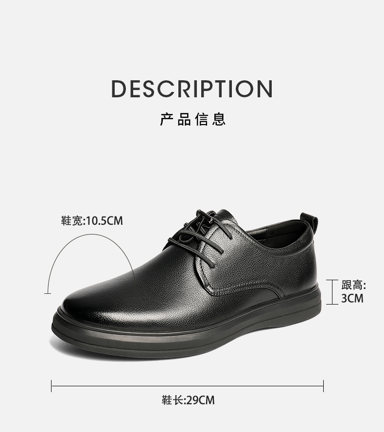 | 风格:休闲 | 色系:黑色 | 跟高数值:3CM | 40码鞋宽参考(男):10.5CM | 性别:男子 |