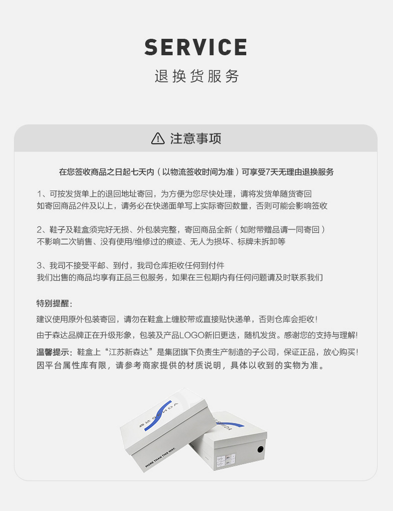 SENDA(森达),品牌成立于1977年,拥有40年发展史,秉承舒适的制鞋理念,从用料到工艺都经过严格质量把控。男鞋以舒适质感著称,覆盖商务正装、商务休闲、时尚休闲三大系列,适用不同场合的需求,同时开发摩克、加州等一系列功能性鞋履,行走体验;女鞋以款式优雅、穿着舒适为主要特征,依时尚潮流添加当季设计元素,每季推出时尚、休闲等系列鞋款,为都市白领提供不同场合的搭配需求。目前门店已覆盖近百座城市,数量达1800多家。