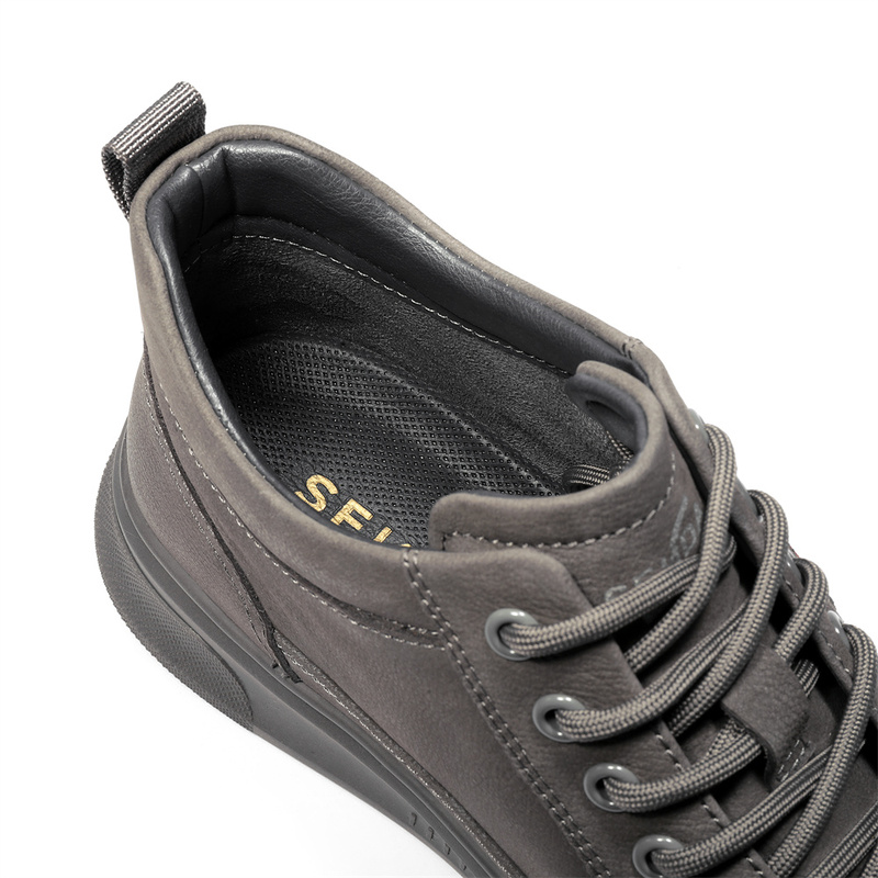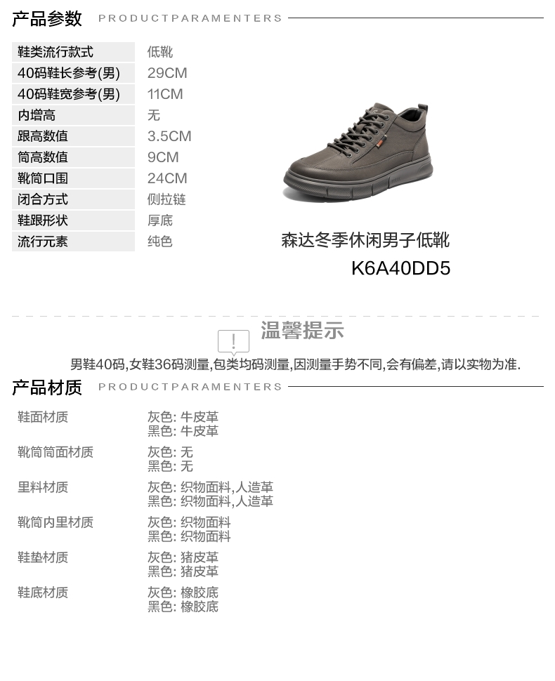 | 色系:灰色 | 跟高数值:3.5CM | 40码鞋宽参考(男):11CM | 筒高数值:9CM | 性别:男子 |