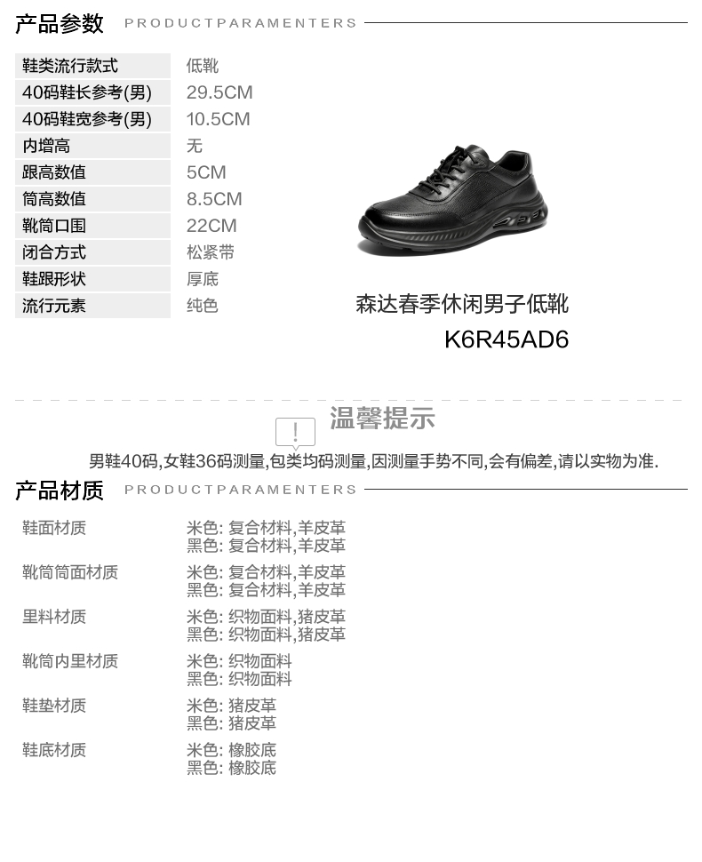 | 闭合方式:松紧带 | 40码鞋宽参考(男):10.5CM | 靴筒口围:22CM | 上市时间:2026年春季 | 鞋类流行款式:低靴 |