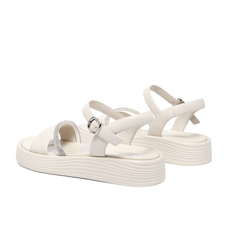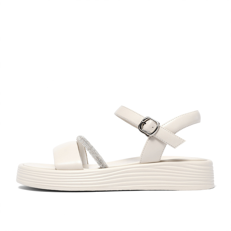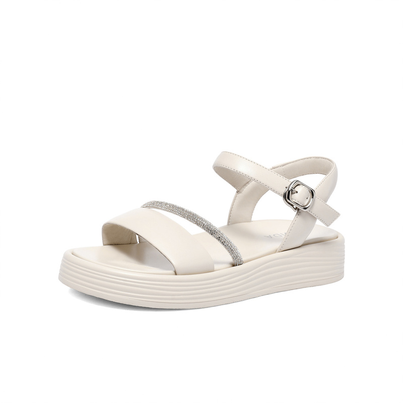 | 鞋头款式:露趾 | 鞋底材质:橡胶底 | 鞋面图案:纯色 | 鞋跟形状:厚底 | 鞋面材质:羊皮革 |