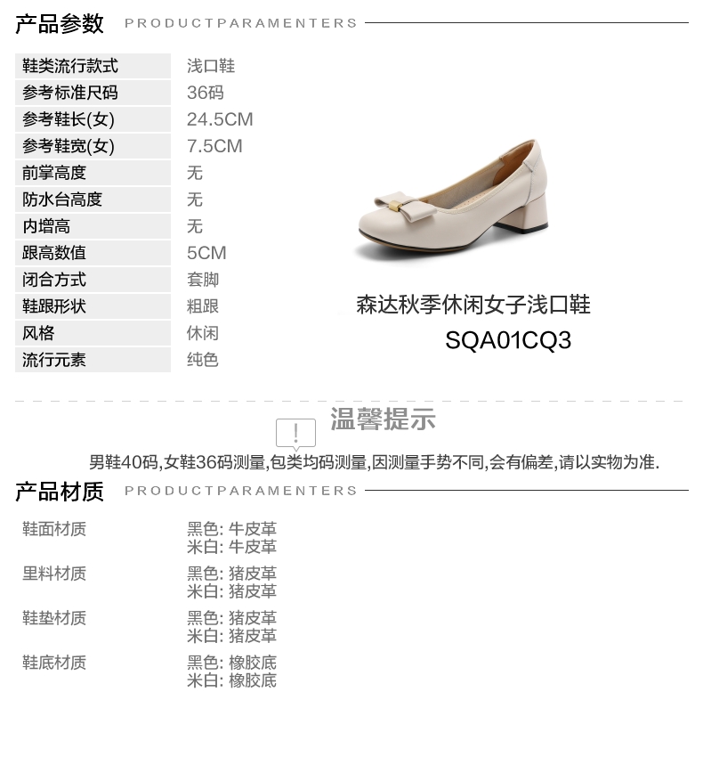 | 鞋头款式:小方头 | 鞋底材质:橡胶底 | 鞋面图案:纯色 | 内增高:无 | 鞋跟形状:粗跟 |