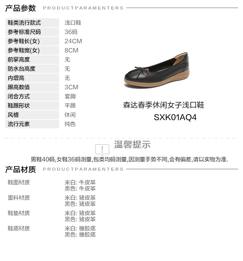 | 鞋面材质:牛皮革 | 流行元素:纯色 | 参考鞋长(女):24CM | 参考鞋宽(女):8CM | 闭合方式:套脚 |