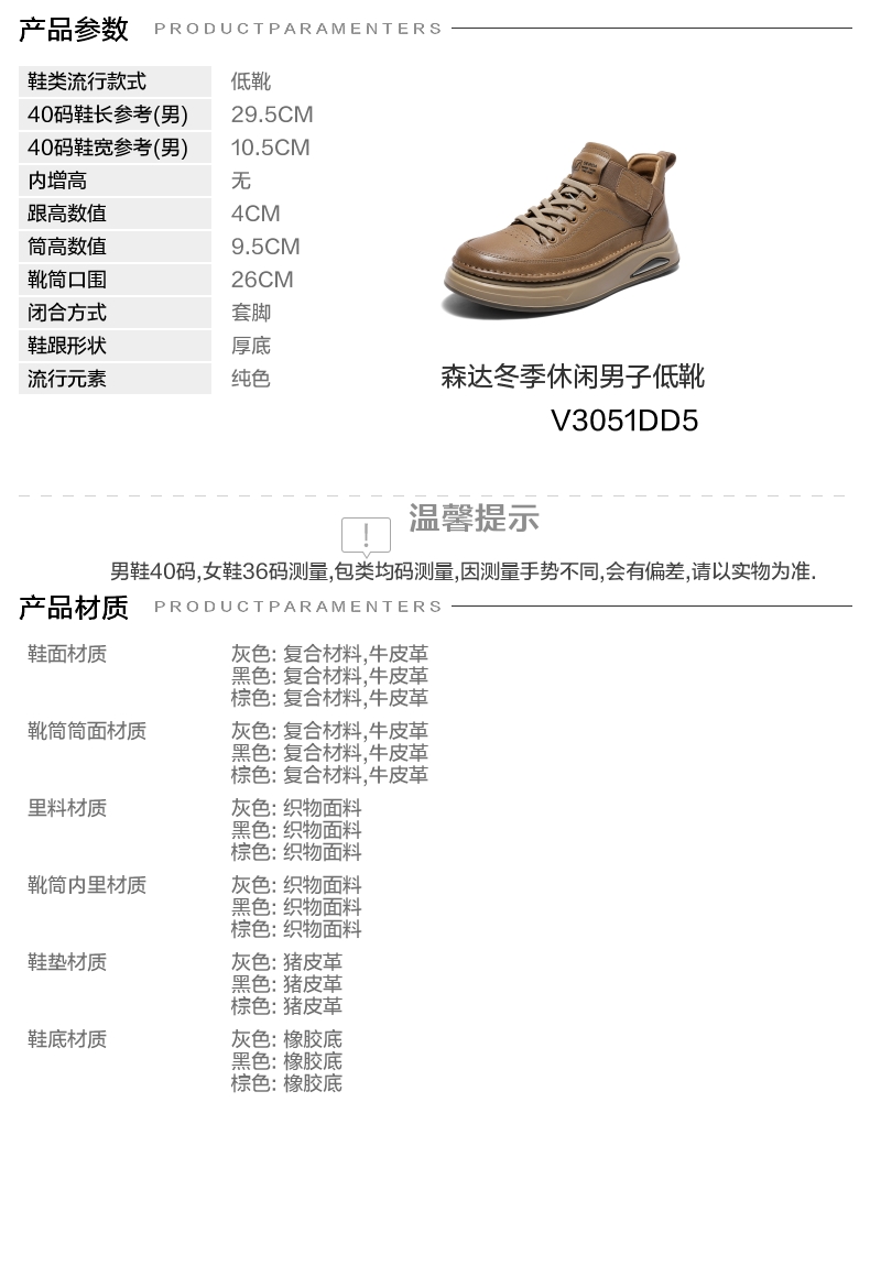 | 闭合方式:套脚 | 40码鞋宽参考(男):10.5CM | 靴筒口围:26CM | 上市时间:2025年冬季 | 鞋类流行款式:低靴 |