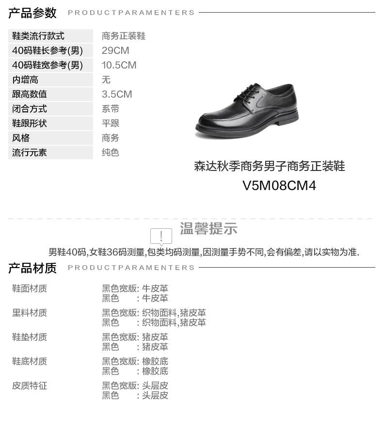 | 风格分类:正装皮鞋 | 上市时间:2024年秋季 | 生产/经销/进口厂家:江苏新森达鞋业有限公司 | 鞋类流行款式:商务正装鞋 | 鞋头款式:圆头 |