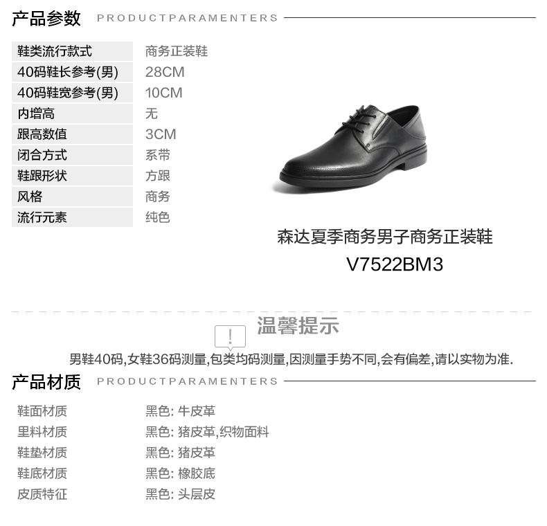 | 鞋类流行款式:商务正装鞋 | 鞋头款式:圆头 | 执行标准: | 跟高范围:中跟鞋(3-5CM) | 鞋面图案:纯色 |